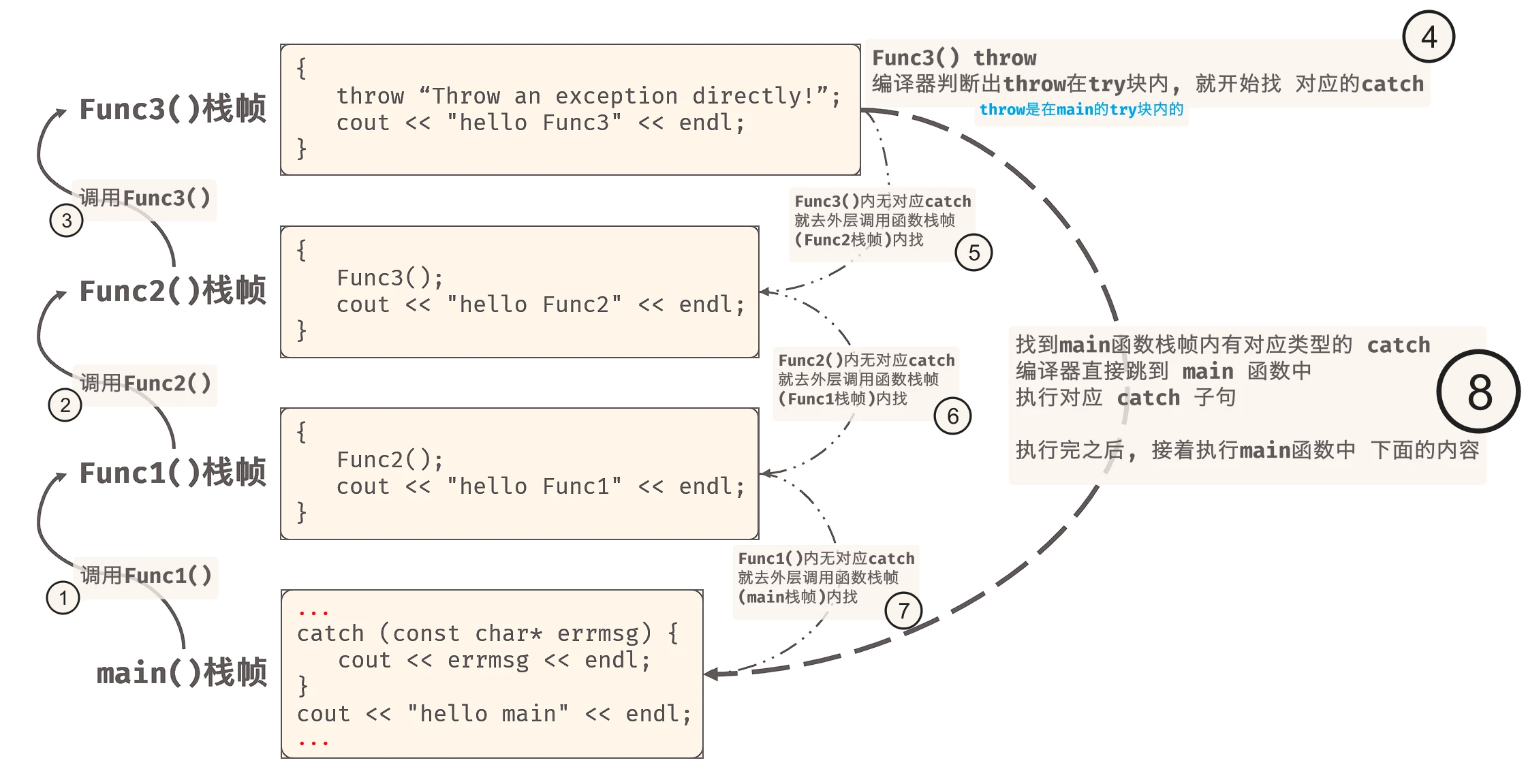 return 0;}这段代码就可以展现出最简单的 抛异常、捕捉异常、处理异常的场景