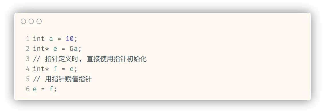 在指针定义时, 直接用其他指针初始化 或 用指针给指针赋值