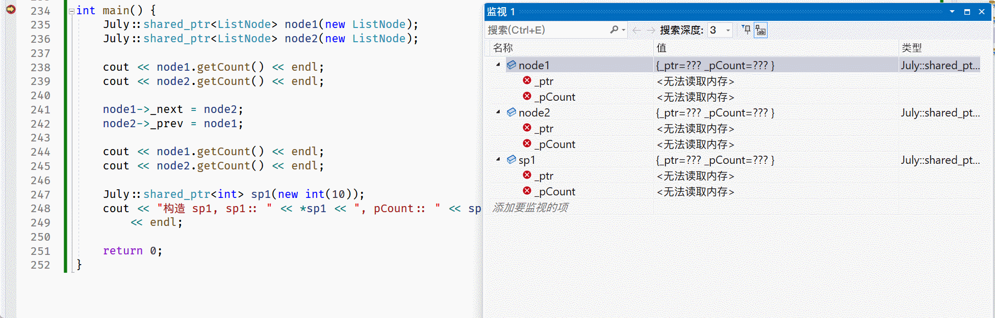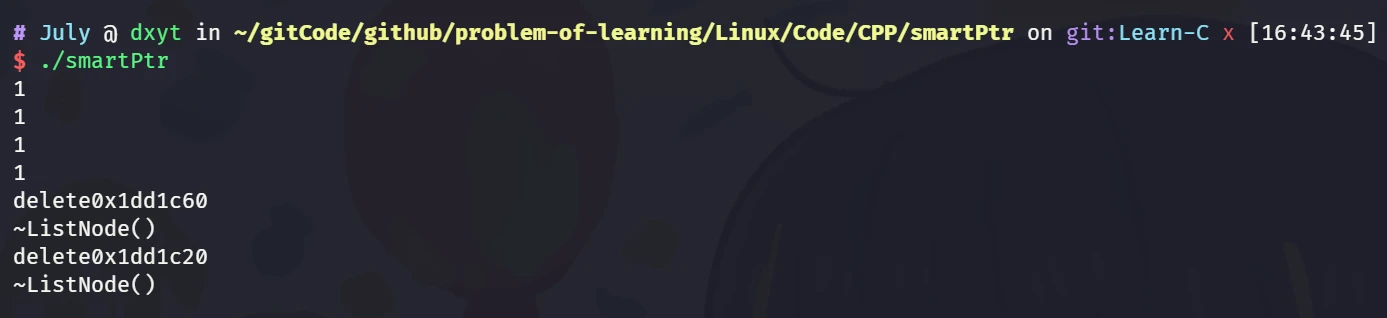struct ListNode { int _data; July::weak_ptr<ListNode> _prev; July::weak_ptr<ListNode> _next;