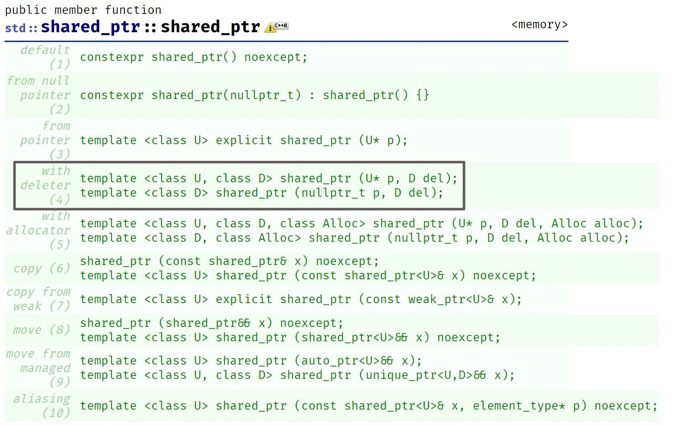 shared_ptr的构造函数中, 也有一个可以传入del的重载, 这也是需要传入定制删除器的